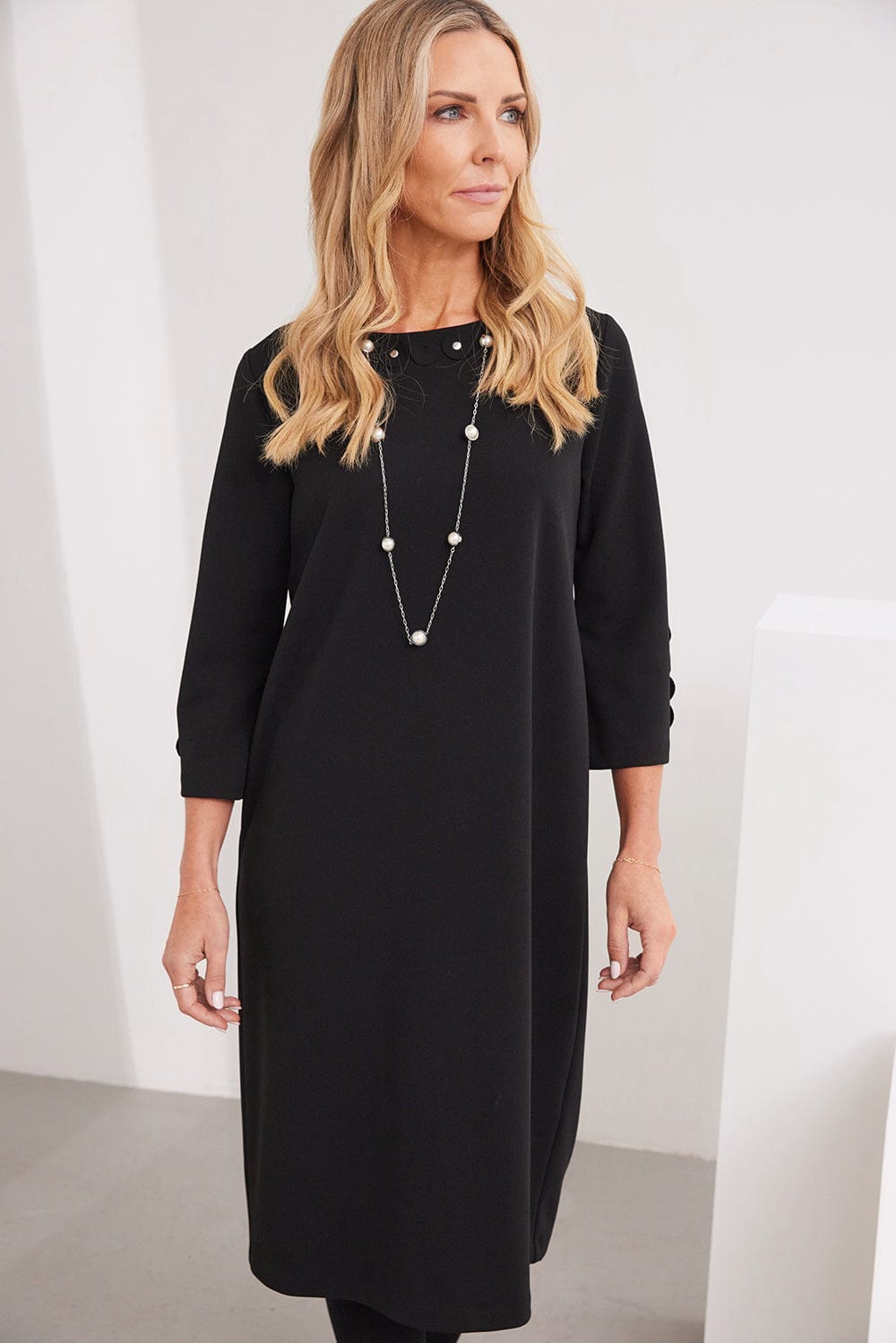 The Siofra necklace features a refined silver-tone finish adorned with elegant circular pearl accents, the perfect piece to enhance any outfit.