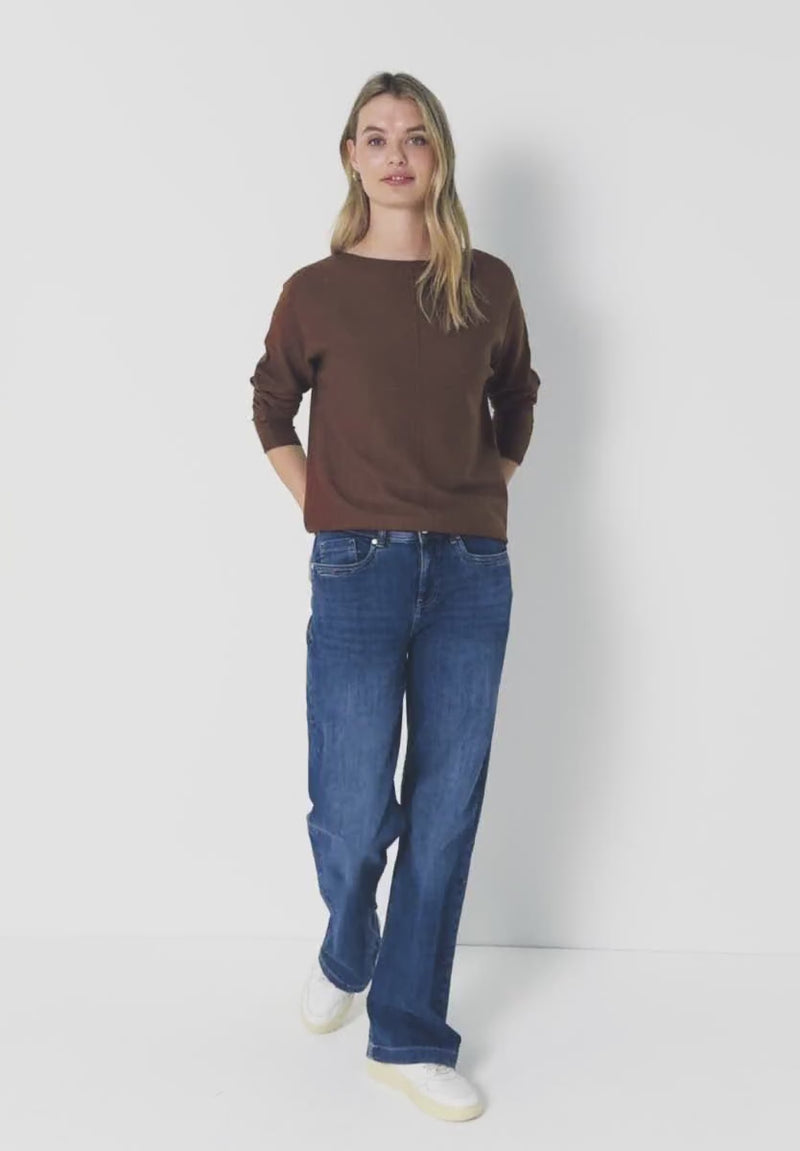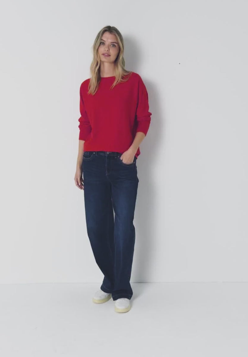 Street One's basic sweater for women scores points with its casual fit and comfortable fit. The boat neck and loose sleeves create a relaxed silhouette. It's an ideal basic piece for comfortable, casual looks with style.