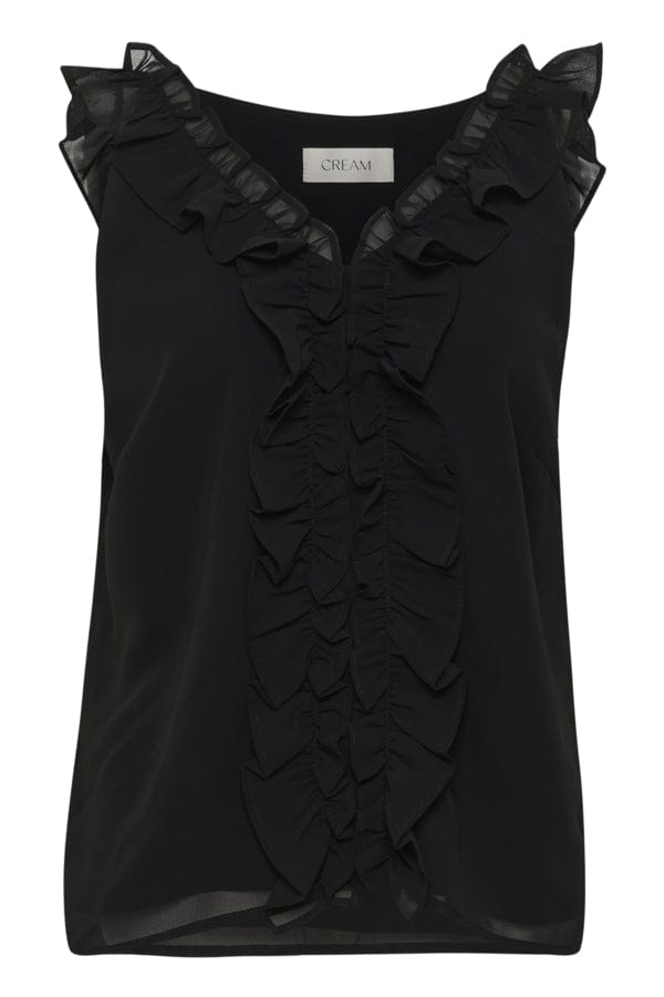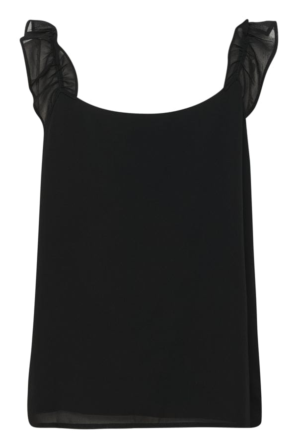 CREAM ruffle cami featuring delicate ruffle sleeves and a charming front panel that adds a touch of femininity to any outfit. This versatile cami pairs effortlessly with jeans or skirts.