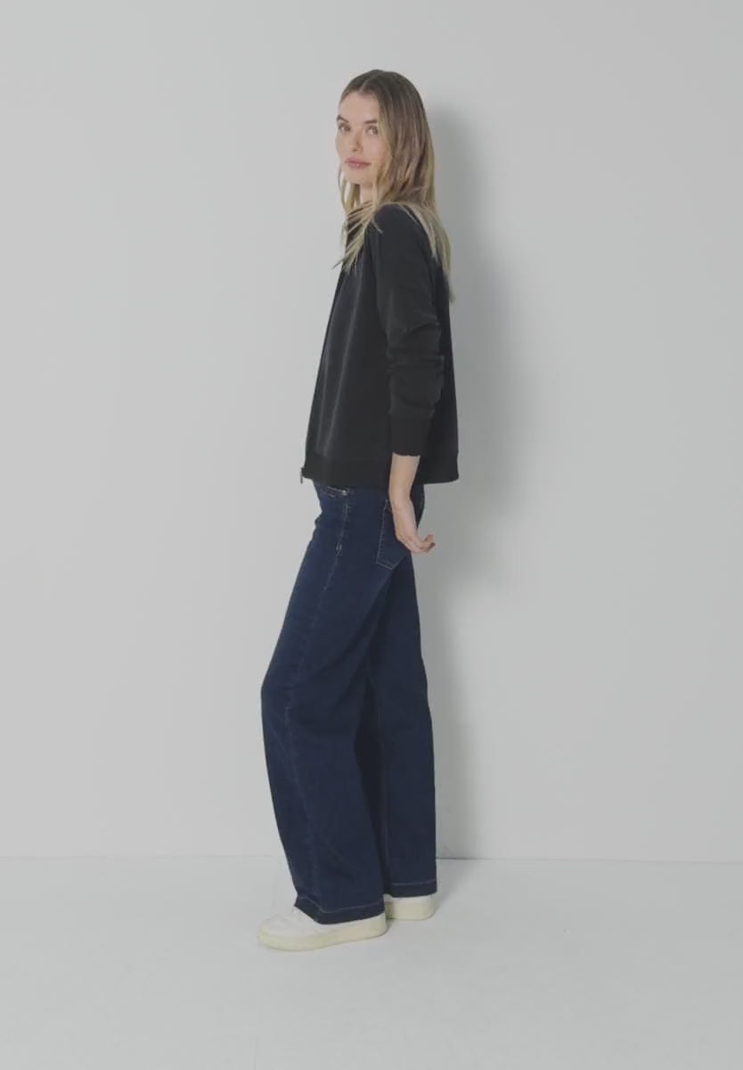 This lightweight women's sweatshirt from Street One features a silk-look fabric with fine ribbed details. Side pockets and a zipper complete the modern, functional design.