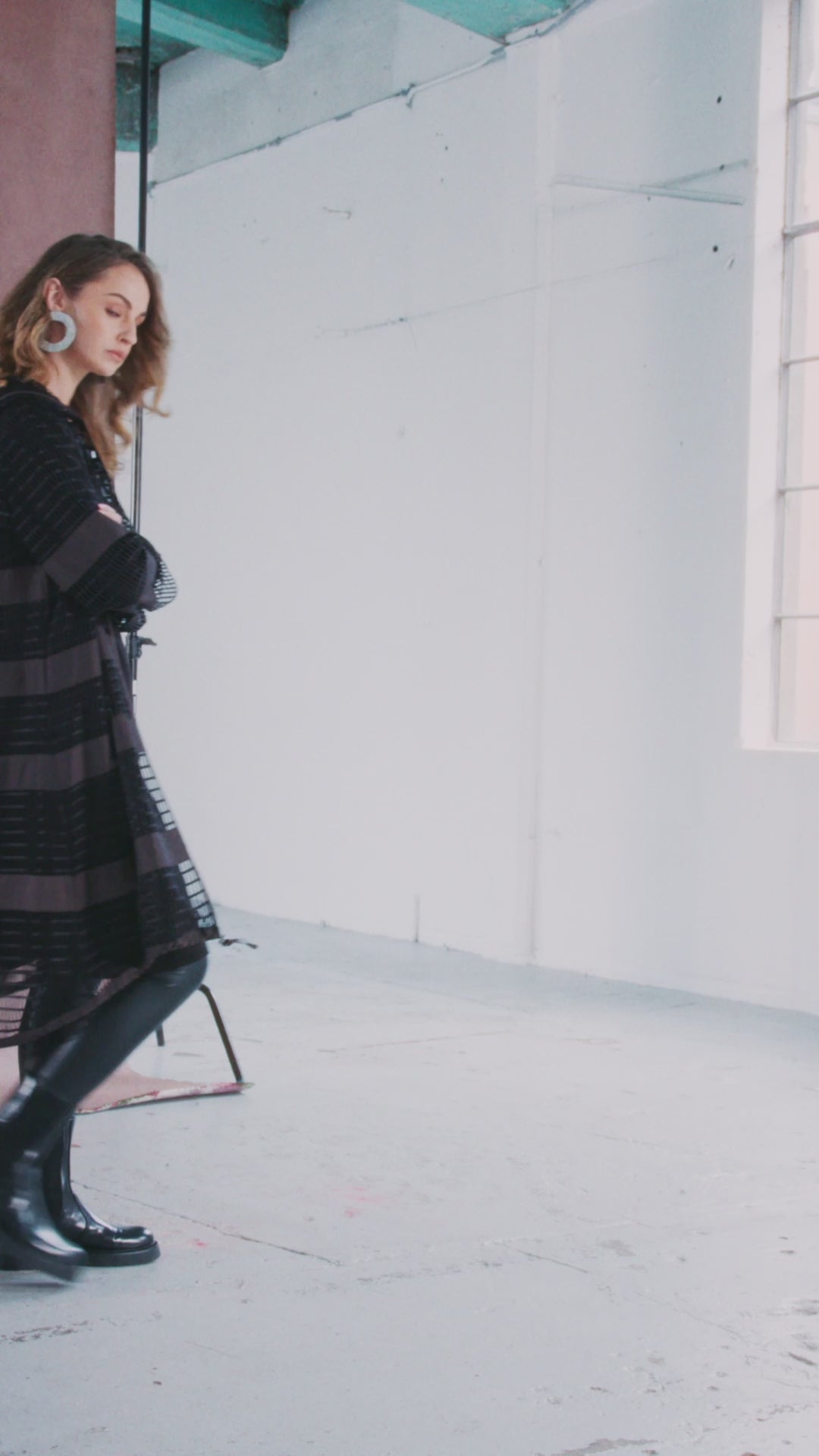 NAYA square mesh long jacket with open mesh jacket with contrast stripes. This jacket is perfect for layering.