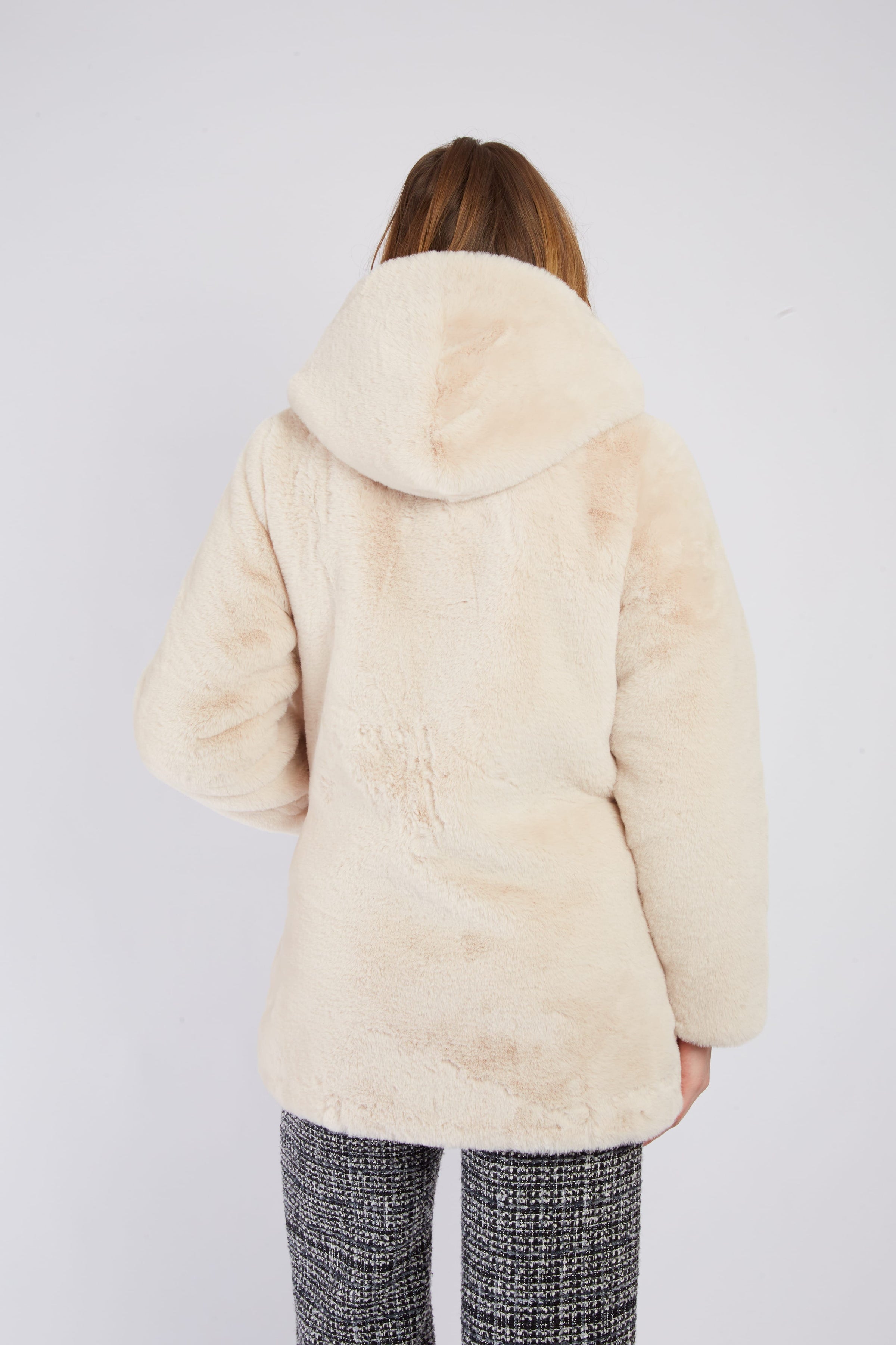 Derhy faux fur pocket coat features double pocket and full faux fur detail. Style this coat for a daytime or evening look.