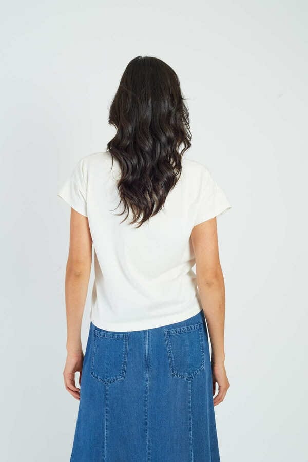 Elevate your casual wardrobe with this Derhy piece, featuring an artistic graphic design that transforms a classic white tee into a statement piece. The intricate postcard print work, round neckline, and thoughtful sequin detailing make it an ideal choice for bridging seasonal transitions, offering versatility that extends from spring through summer styling.