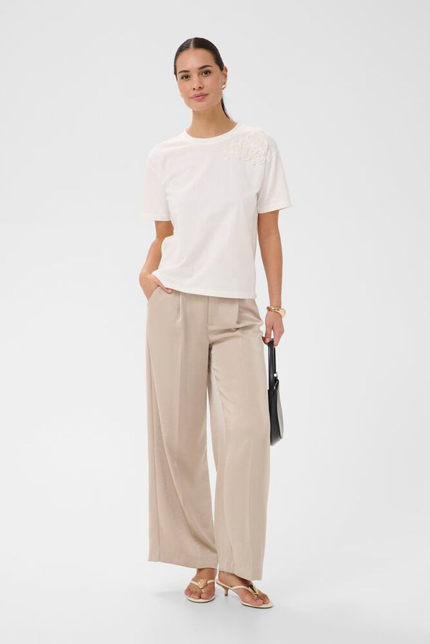 Meet the Kaffe appliqué tee, a fresh take on the timeless white t-shirt. Adorned with a delicate rose design and round neck, this off-white essential brings understated elegance to your everyday rotation. Perfect for those moments when you want to look effortlessly put-together without trying too hard.