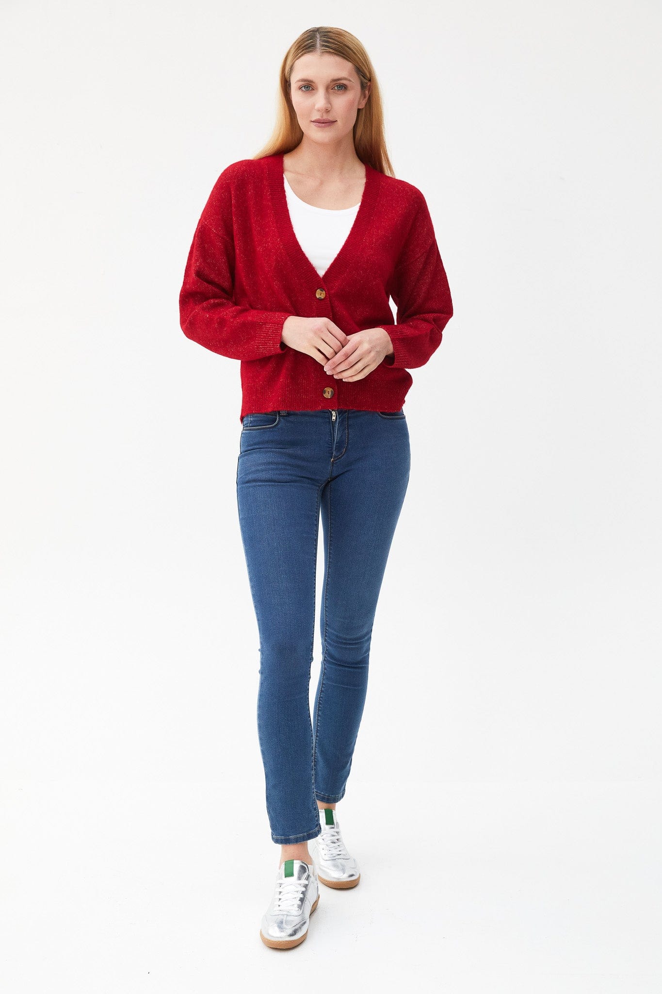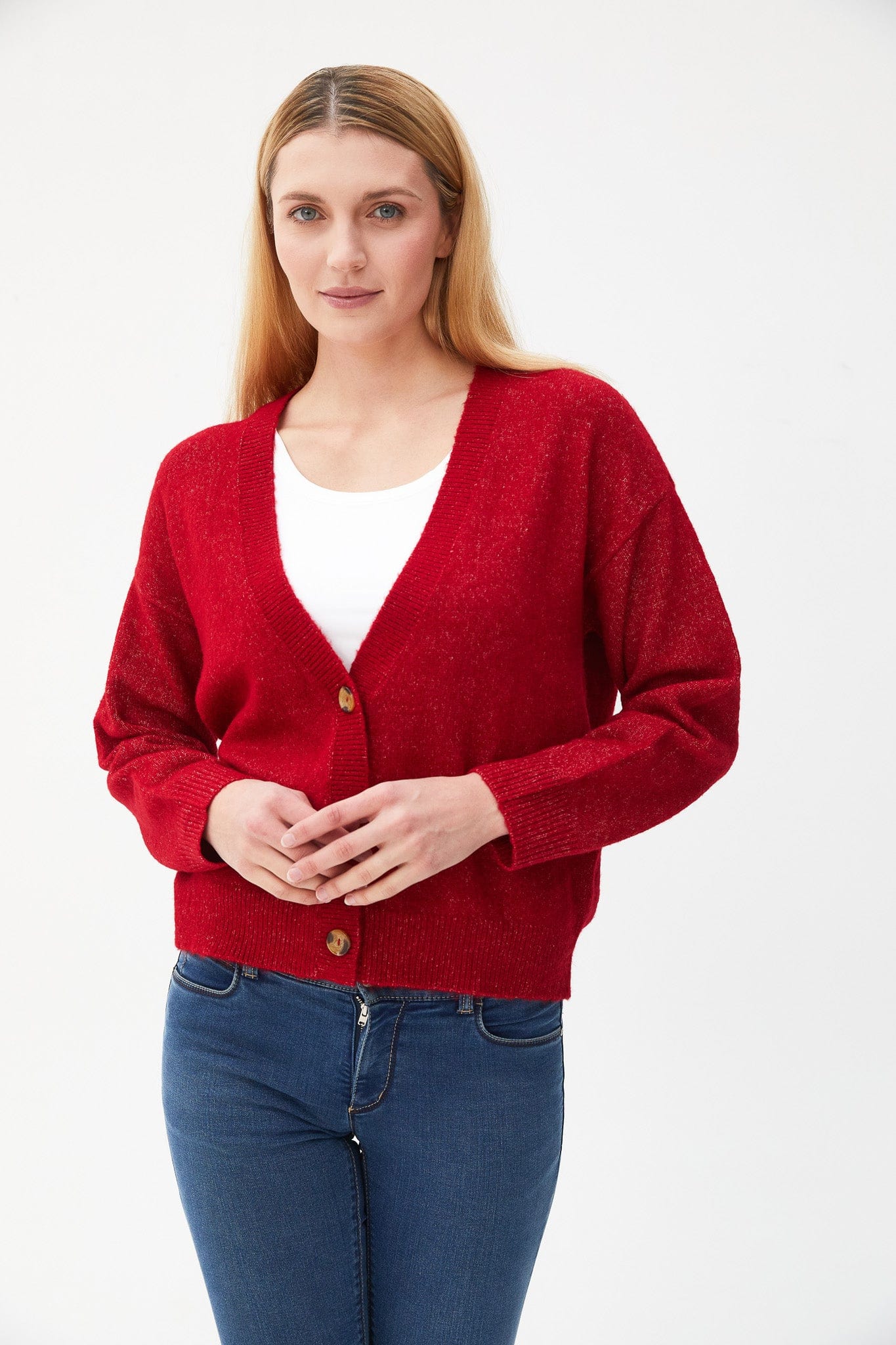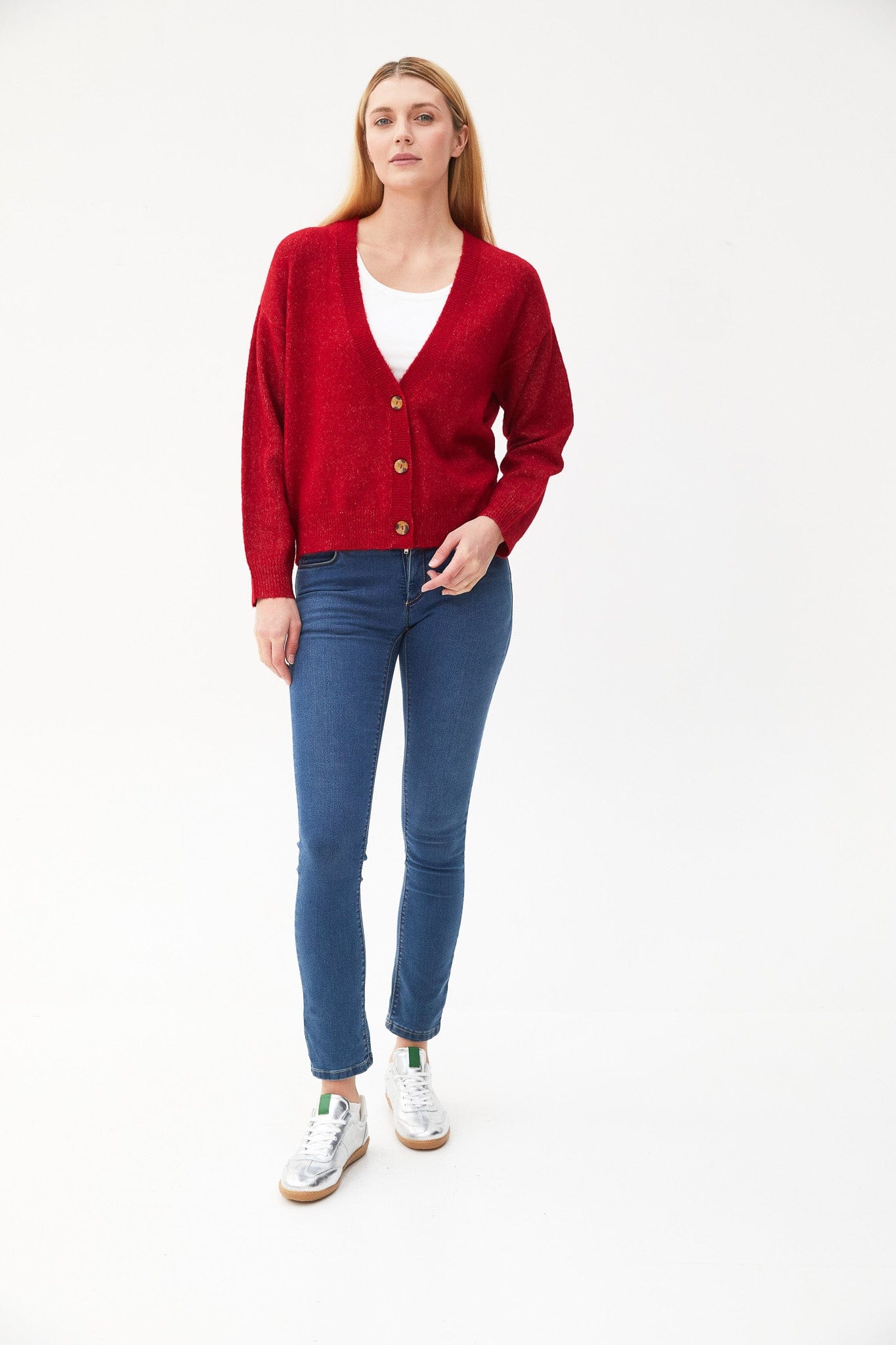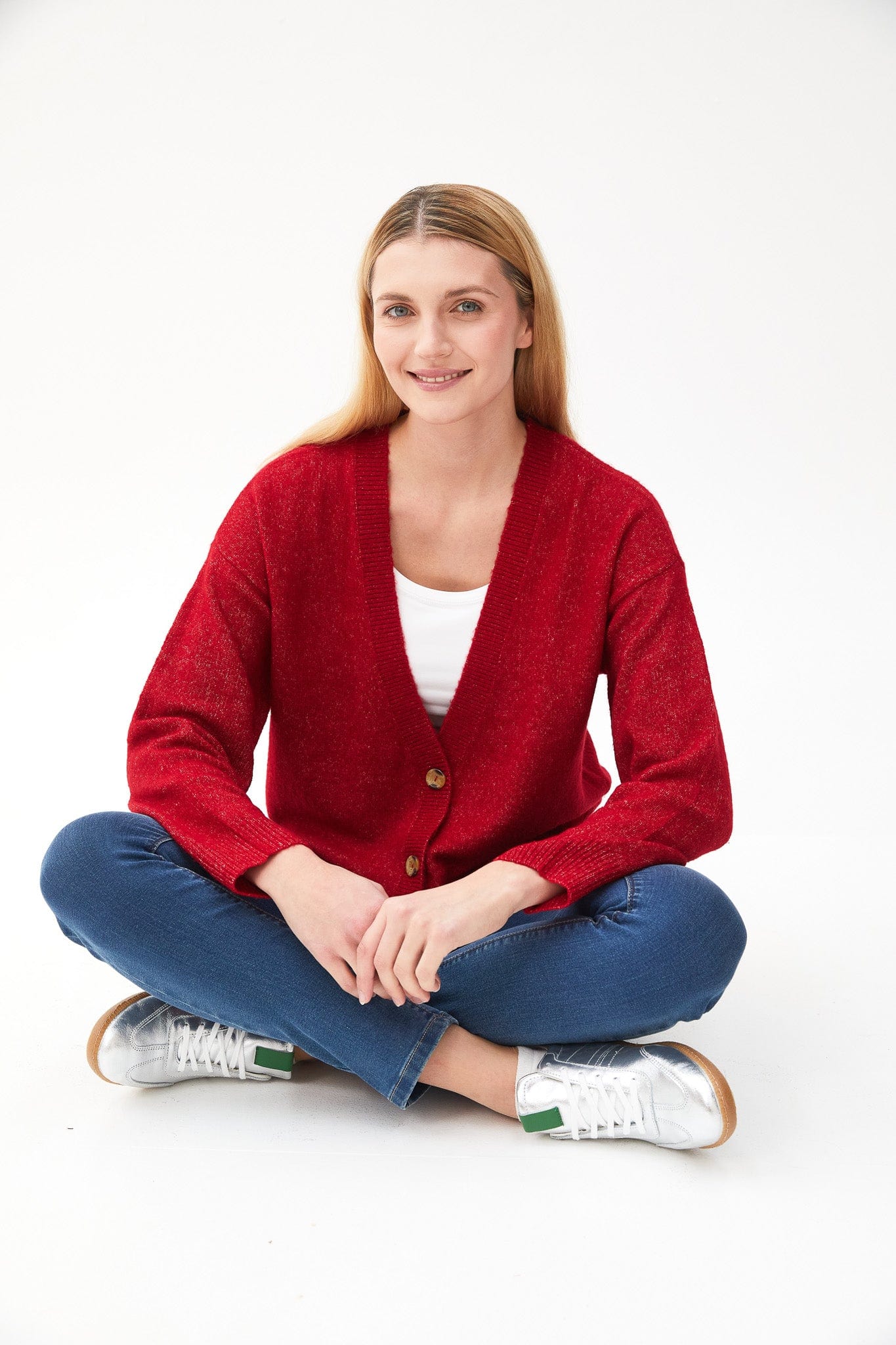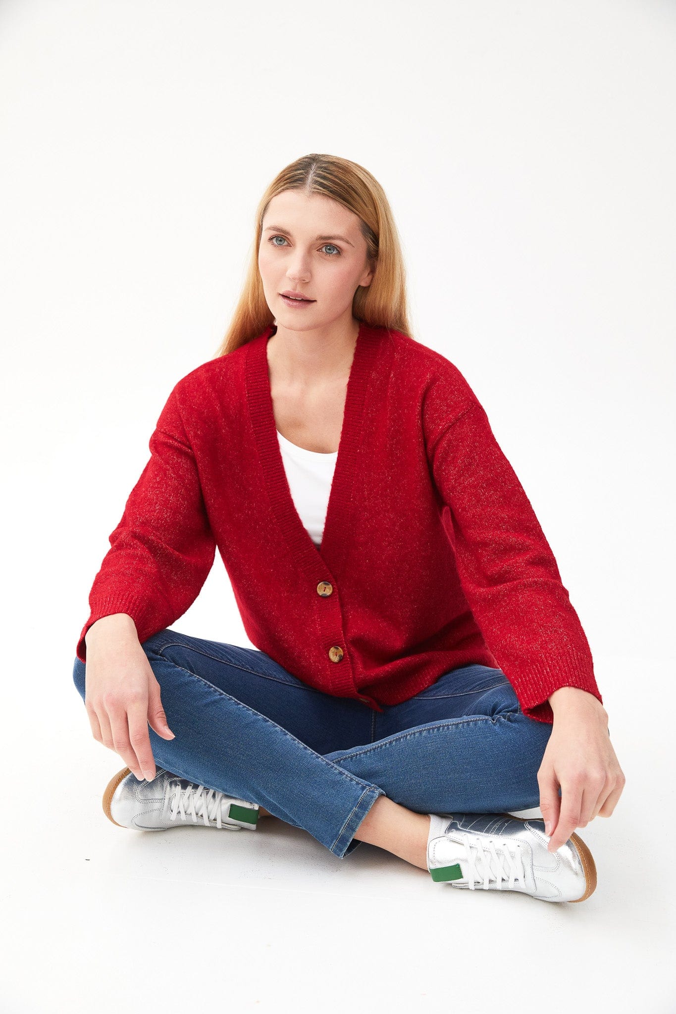 Kartner button front cardigan features a flattering v-neck design.  Crafted for versatility, this cardigan is perfect for layering over your favourite tops. Its button-front closure allows for easy wear and adjustable styling.