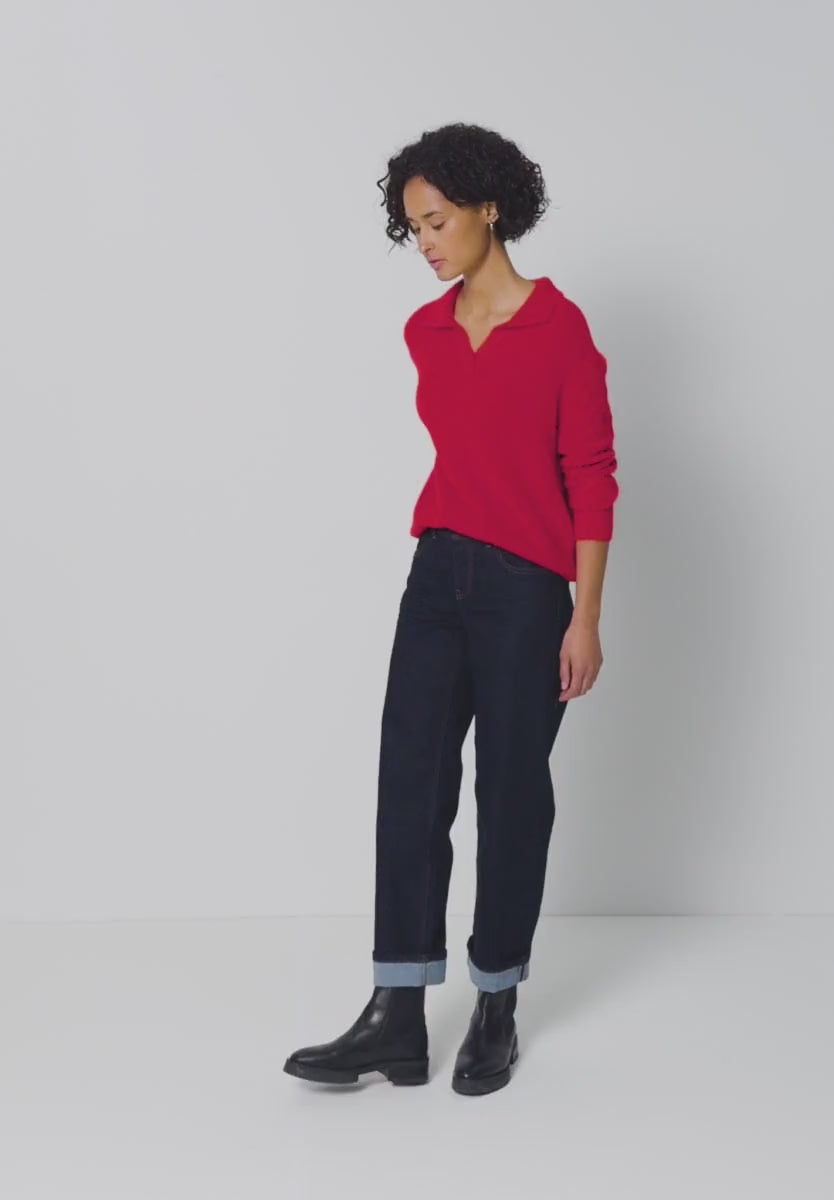 Street One's women's feather yarn sweater combines a sporty look with a cozy feel. The polo collar adds a stylish accent, while the fluffy, solid-color fabric ensures comfort. A stylish companion for feminine everyday looks.