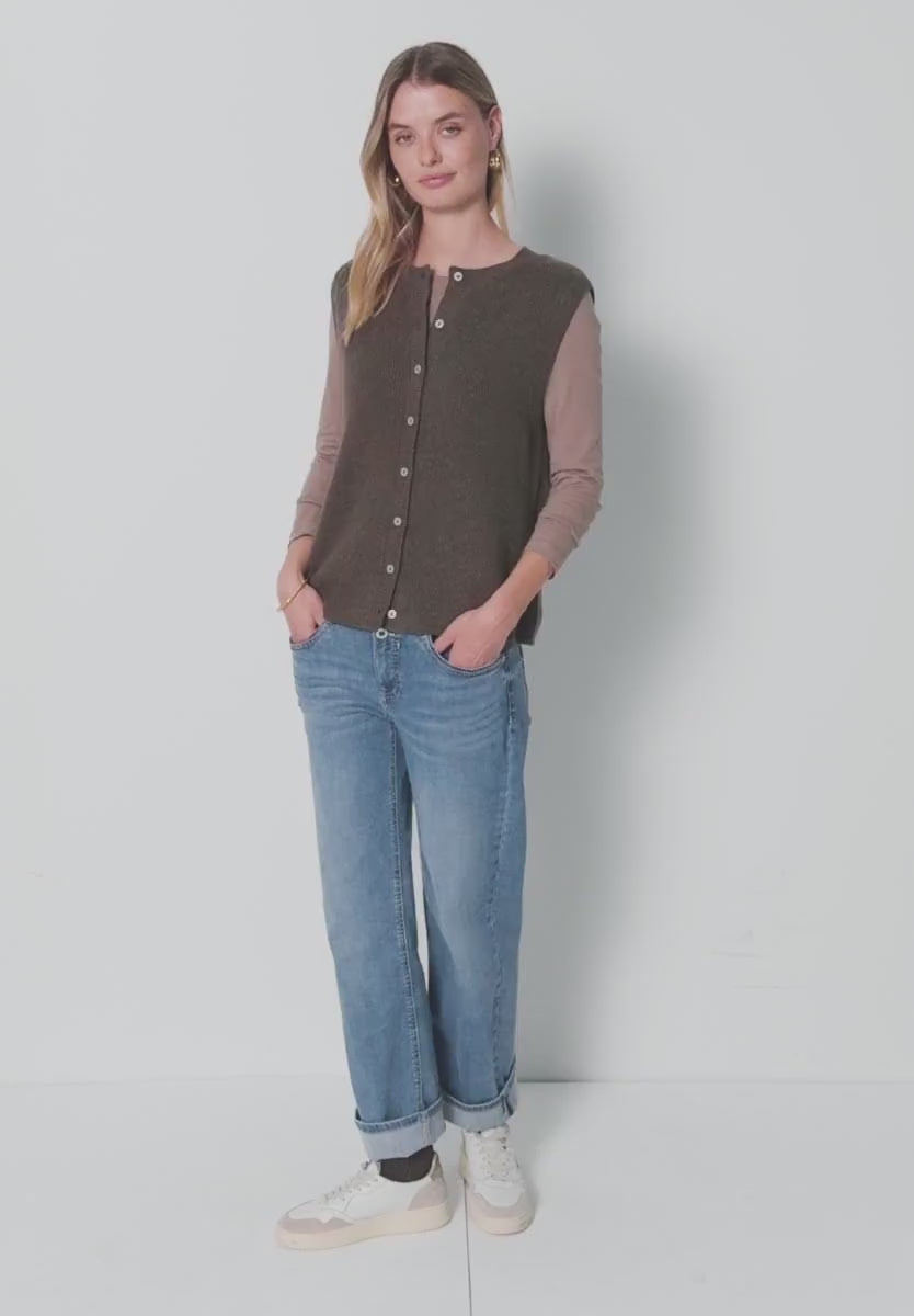 This sleeveless cardigan from Street One for women will breathe new life into your knitwear wardrobe. Featuring a round neck, button placket, and soft feel, it's ideal for stylish layering. Its cozy look meets modern lightness.