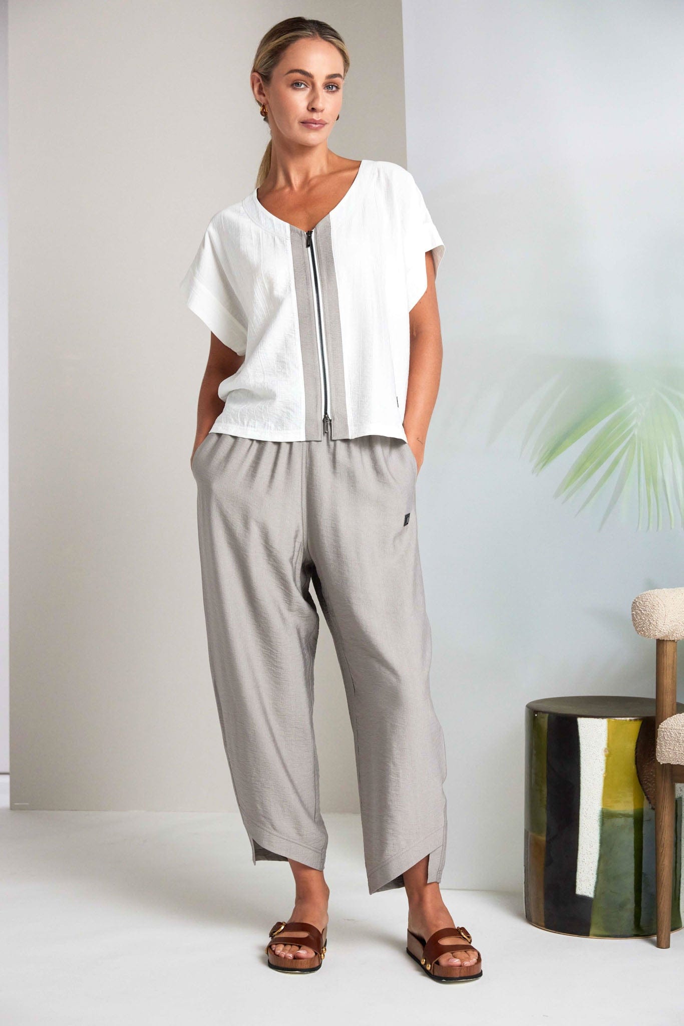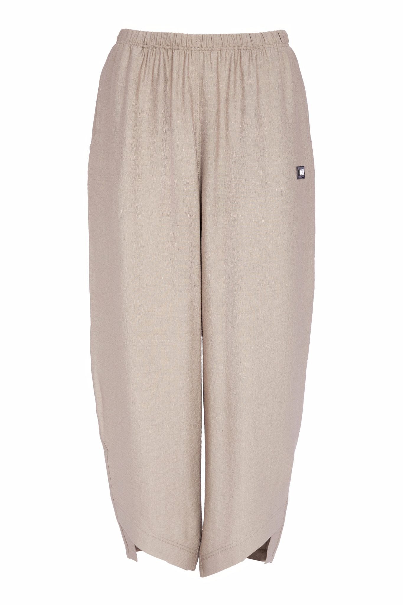 The NAYA curved cuff trouser features an easy pull up elasticated waistband, the legs are light and loose thanks to the quality of the fabric and cut. The hemline is tulip shaped and the perfect partner to your trainers or sandals.