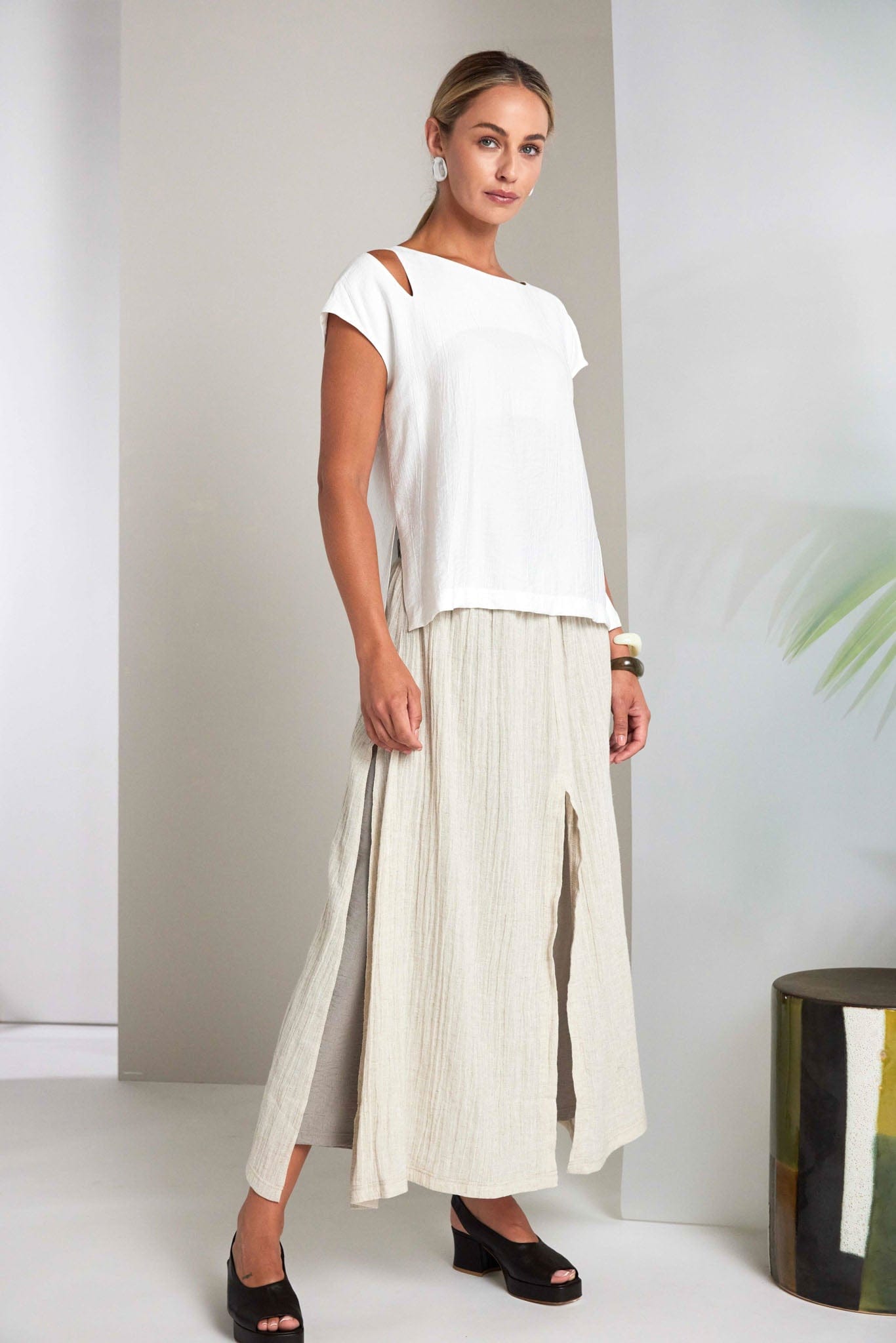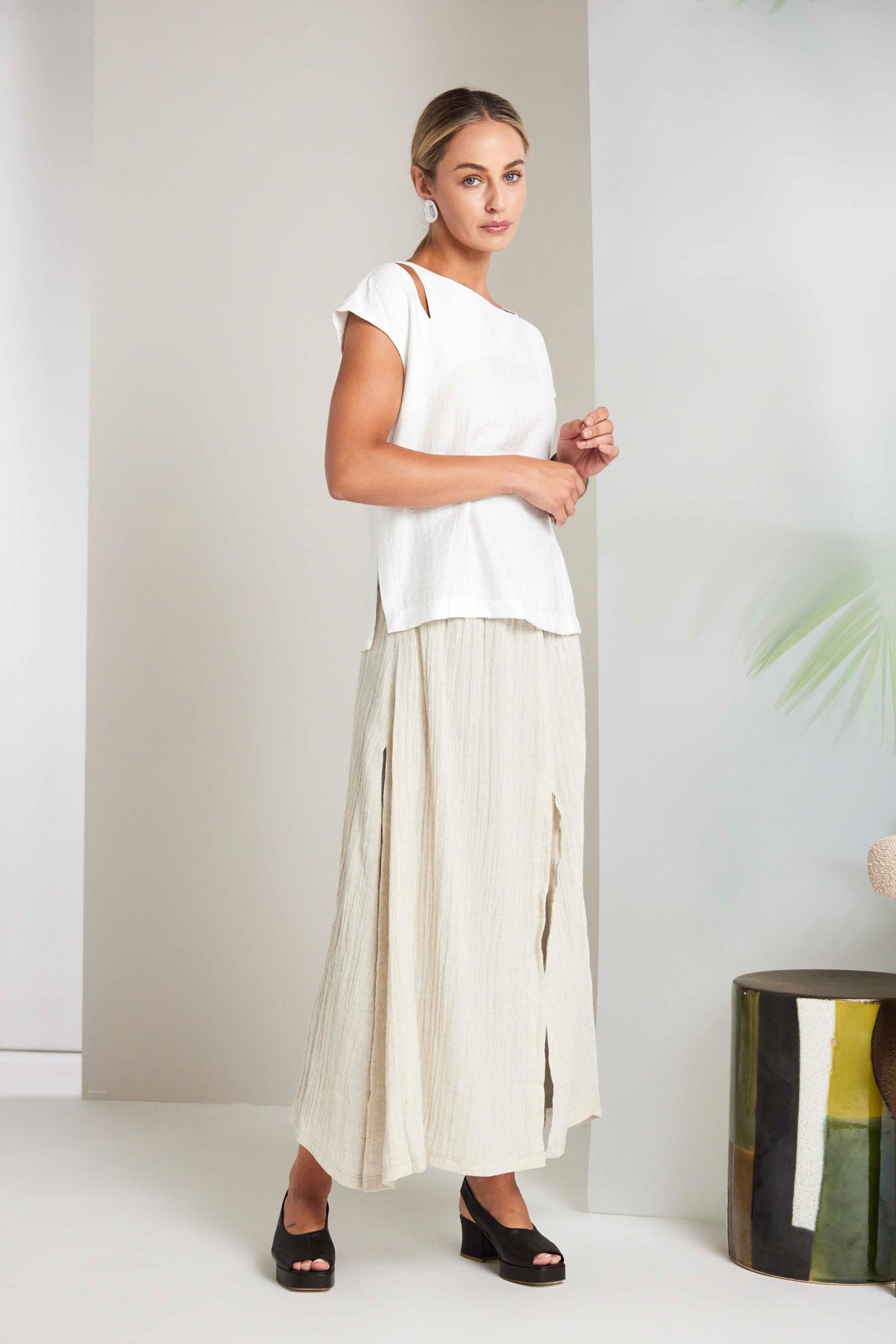 The NAYA skirt front trouser features a pull up waist and sports an extra layer to drape the skirt over your base trouser. This guarantees interest ensuring you look styled right up-to-the-minute in this beautiful piece.