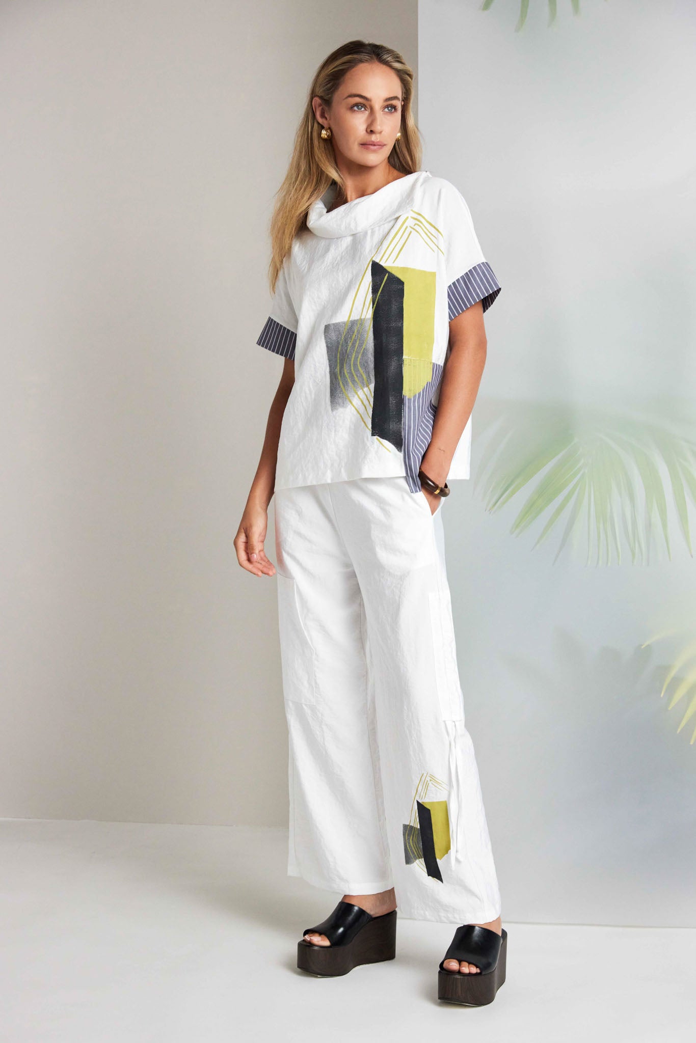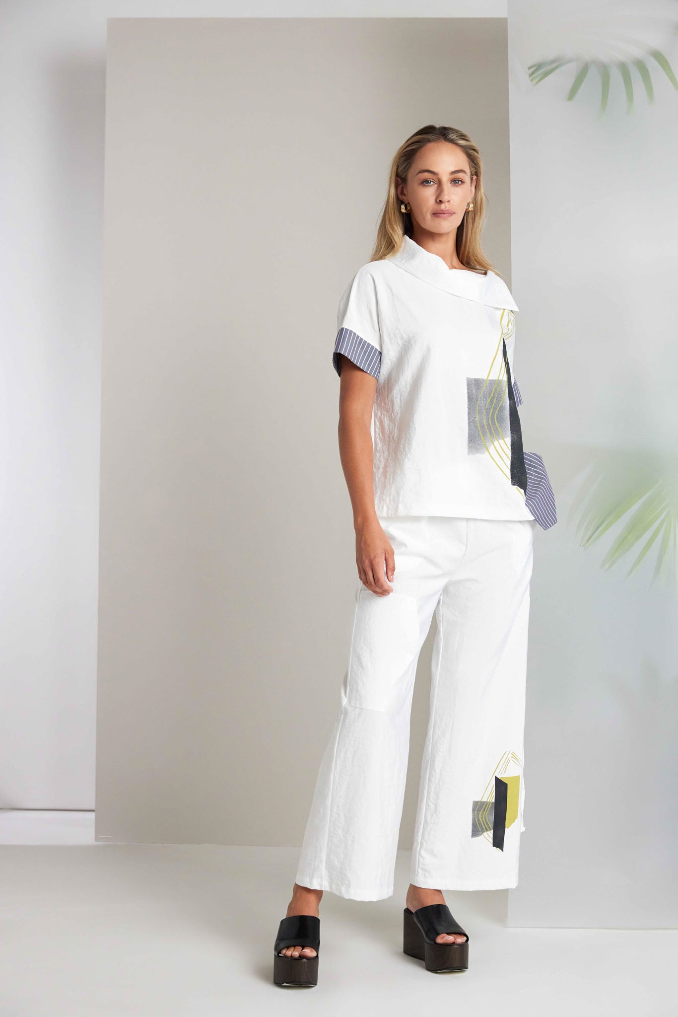 The NAYA trim fold top edges ahead thanks to the wrap collar, short sleeves and an ever so slightly dipping hem. All playing a supporting role to an exquisite graphic print.