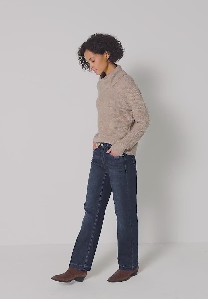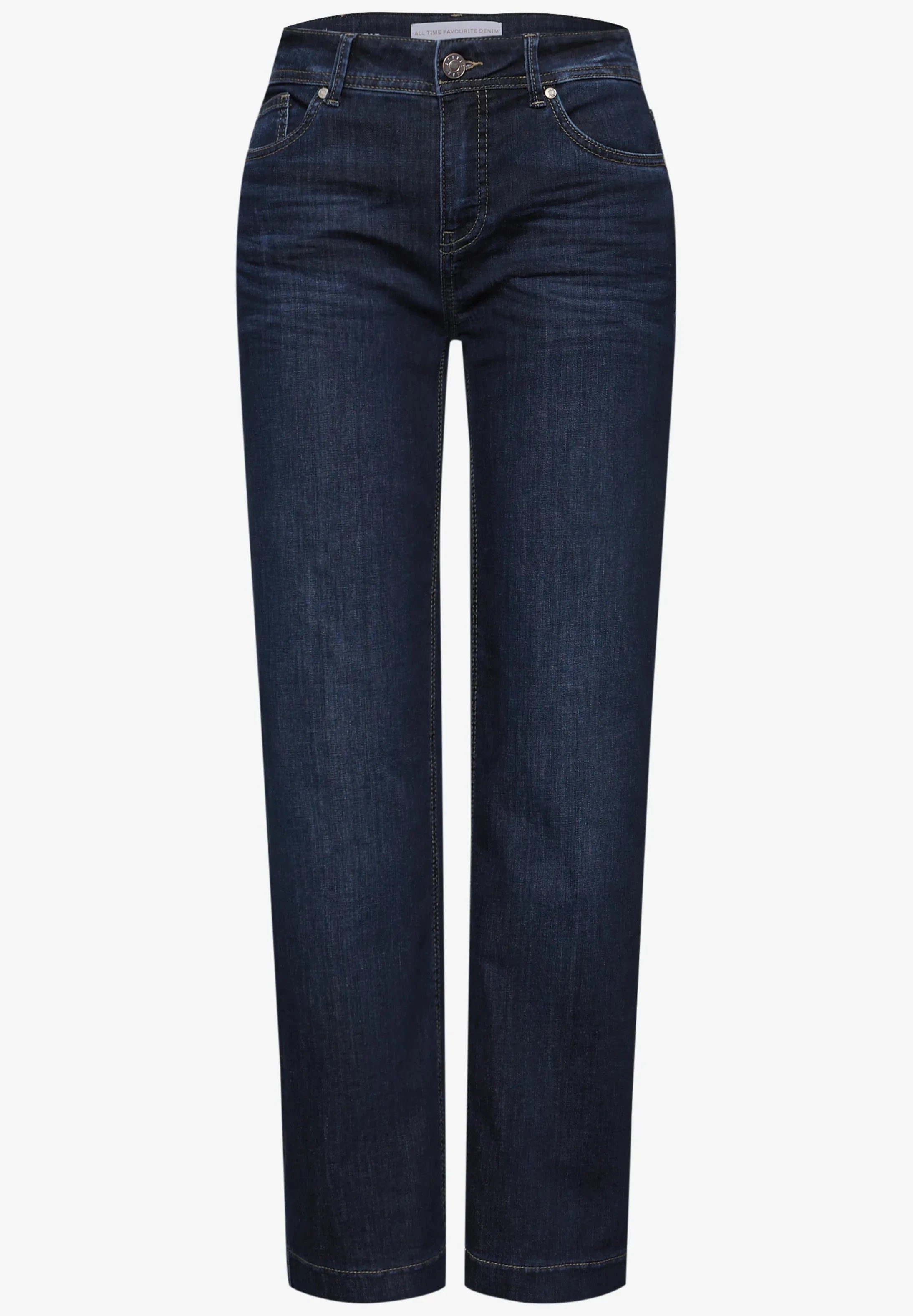 These women's jeans from Street One impress with their classic mid-waist and comfortable straight legs. The dark blue denim wash makes them a versatile basic for everyday wear and the office. The straight legs give these jeans a comfortable, loose fit.