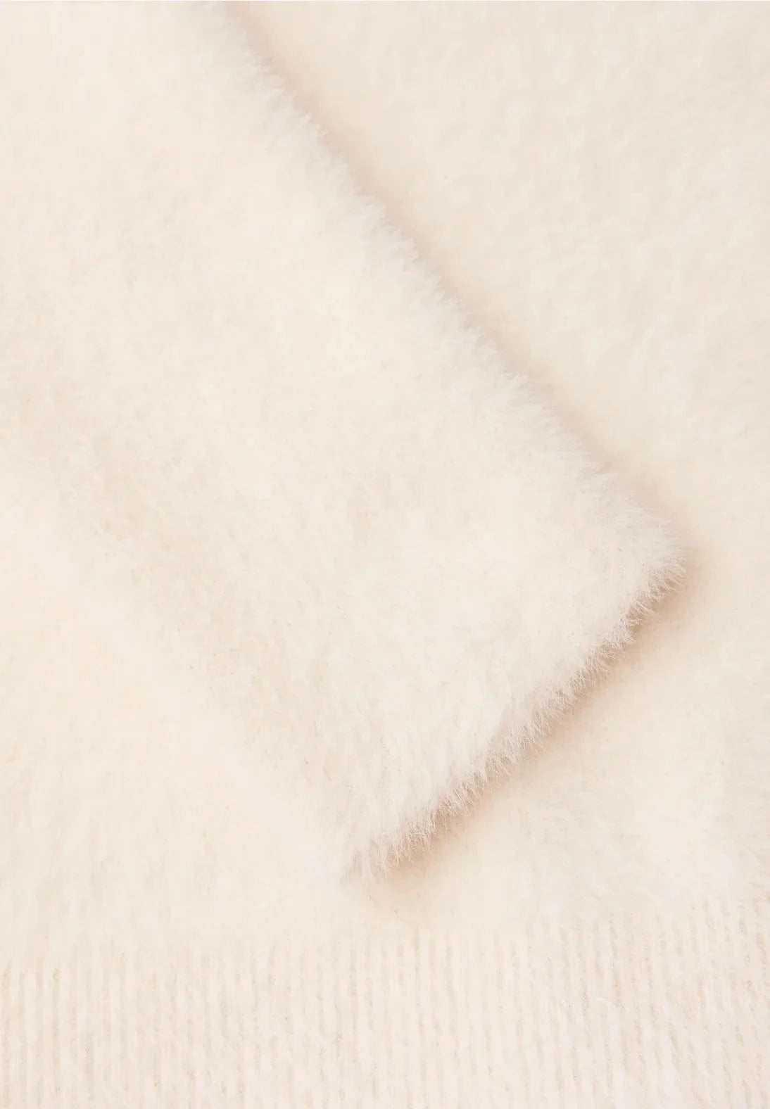 This women's hoodie from Street One impresses with its fluffy feather yarn and sporty design. A drawstring hood and long sleeves create a casual look. Ideal for relaxing and feel-good moments.