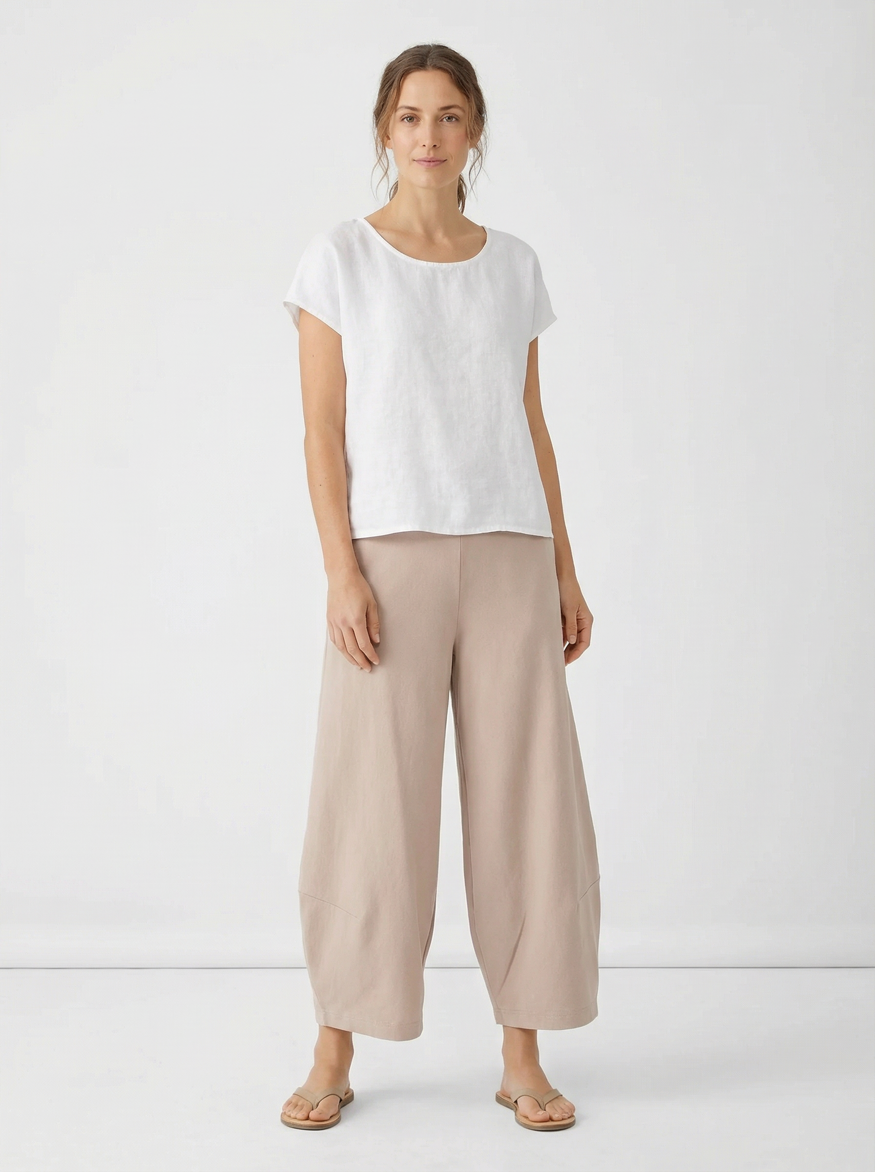 If you are looking for a super stylish balloon trouser for summer check out this pair from ORA. With an elasticated waistband the balloon leg is finished with low level darts for shaping, and two patch pockets have been applied to the back to finish.