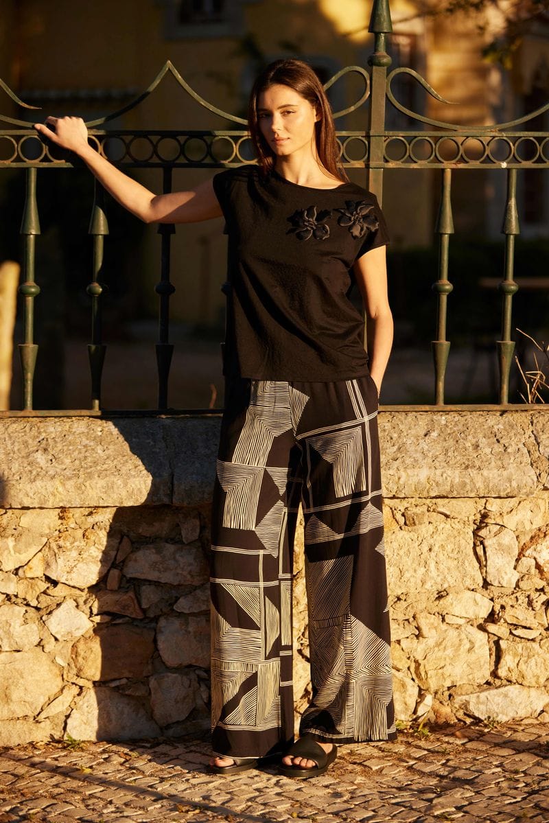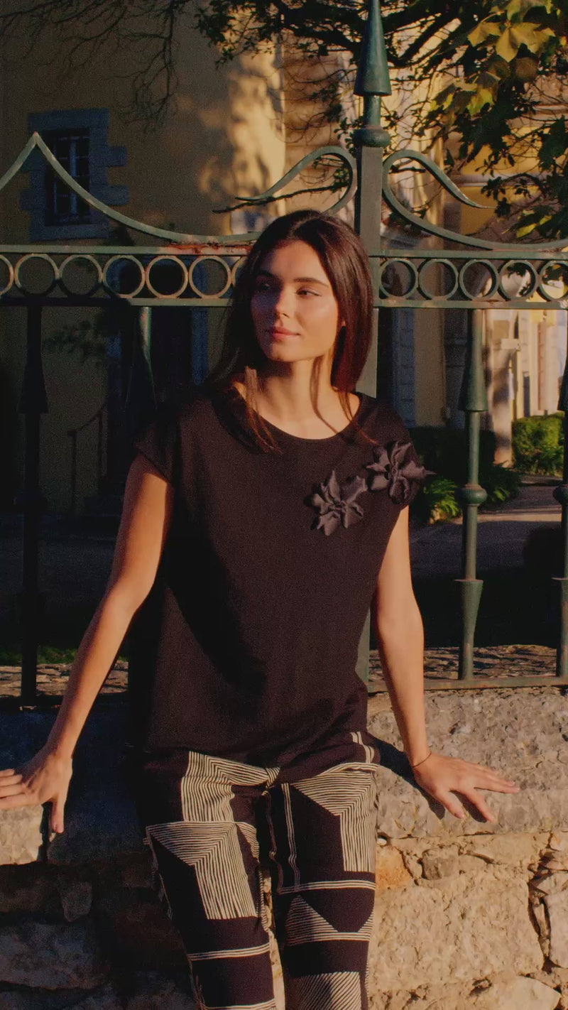 Elevate your everyday wardrobe with the PERUZZI flower t-shirt, where classic comfort meets artistic flair. This playful piece features stunning floral appliqué that transforms a simple tee into a statement-making essential. It's the effortless way to add personality and charm to any summer look.