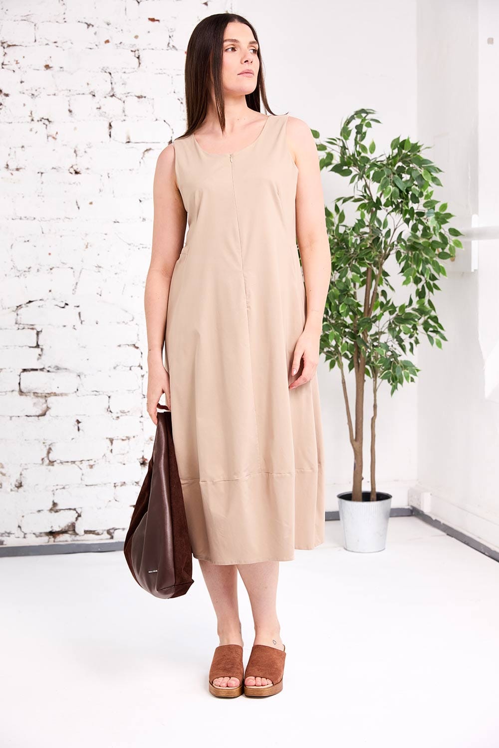 Meet the PERUZZI zip dress, your new wardrobe essential. With its clever zip neckline, you're in control, wear it high for modest elegance or zip it down for a bolder look. Crafted in luxe bengaline and available in timeless taupe, navy, and sand, this spring and summer essential adapts to your mood.