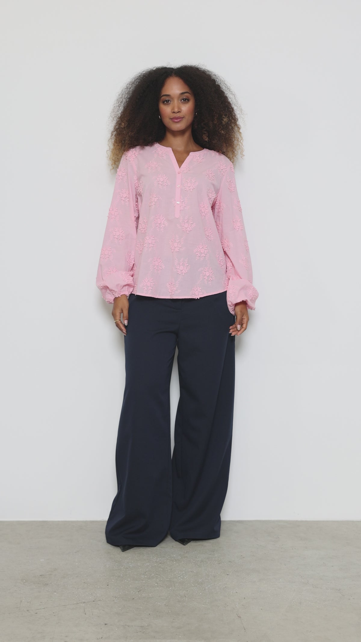 Embrace the season with this charming Soyaconcept blouse, where breezy sleeves meet intricate floral appliqué details. The soft, romantic hues make it the perfect piece for capturing that fresh, springtime spirit with effortless style.