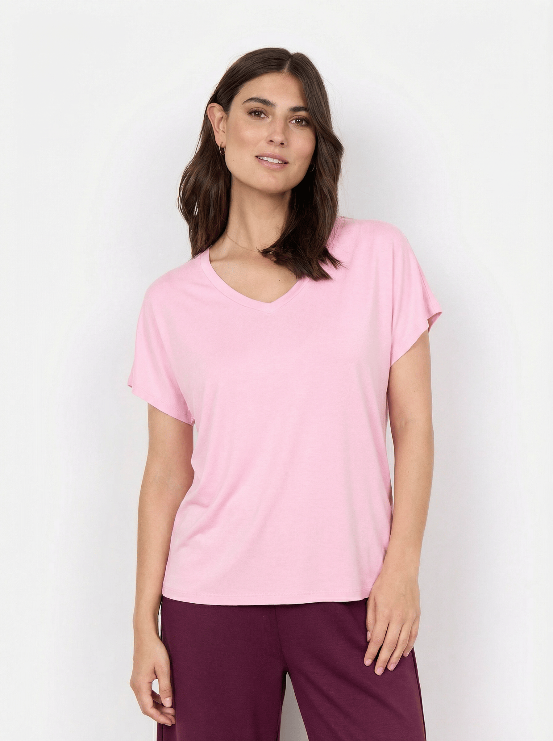 Say hello to your new spring staple, this Soyaconcept v-neck tee in soft blush is the versatile piece you'll reach for again and again. Simple, sweet, and bursting with seasonal charm, it's the perfect foundation for building effortless spring outfits.