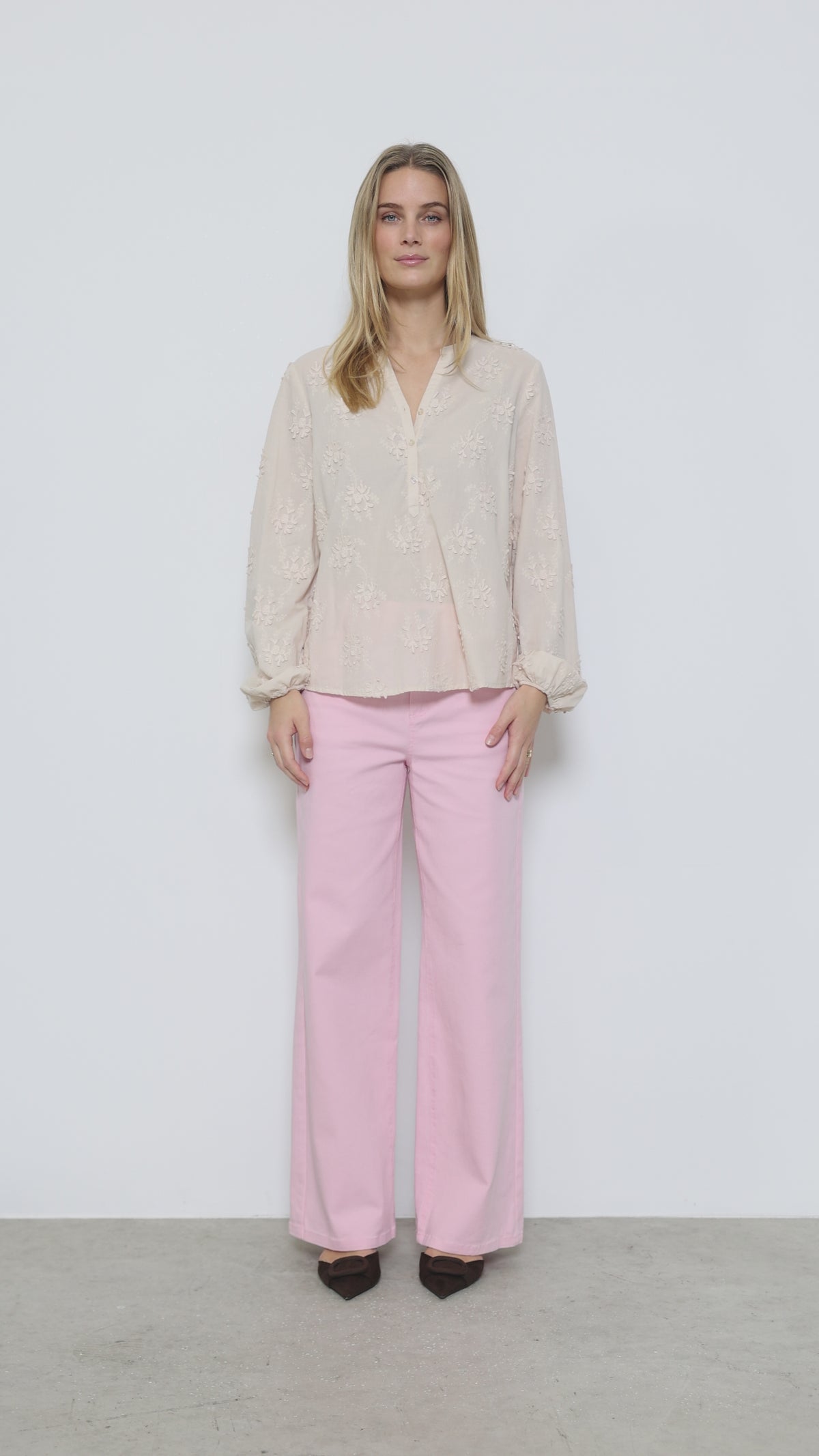 Meet your spring wardrobe essential, these Soyaconcept wide jeans arrive in gorgeous cream and blush tones that instantly elevate any look. With their relaxed silhouette, high waist, and cheerful palette, they're ready to add a splash of colour and personality to your everyday style.