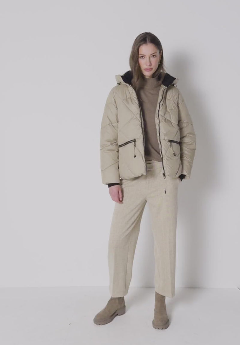 Street One short padded puffa jacket is your go-to layer to add warmth without overdoing it. The drawstring hood keeps the elements at bay, while handy side zip pockets secure your essentials. Soft, stretchy cuffs seal in comfort, and the diamond quilting pattern strikes the perfect balance between athletic edge and contemporary style.