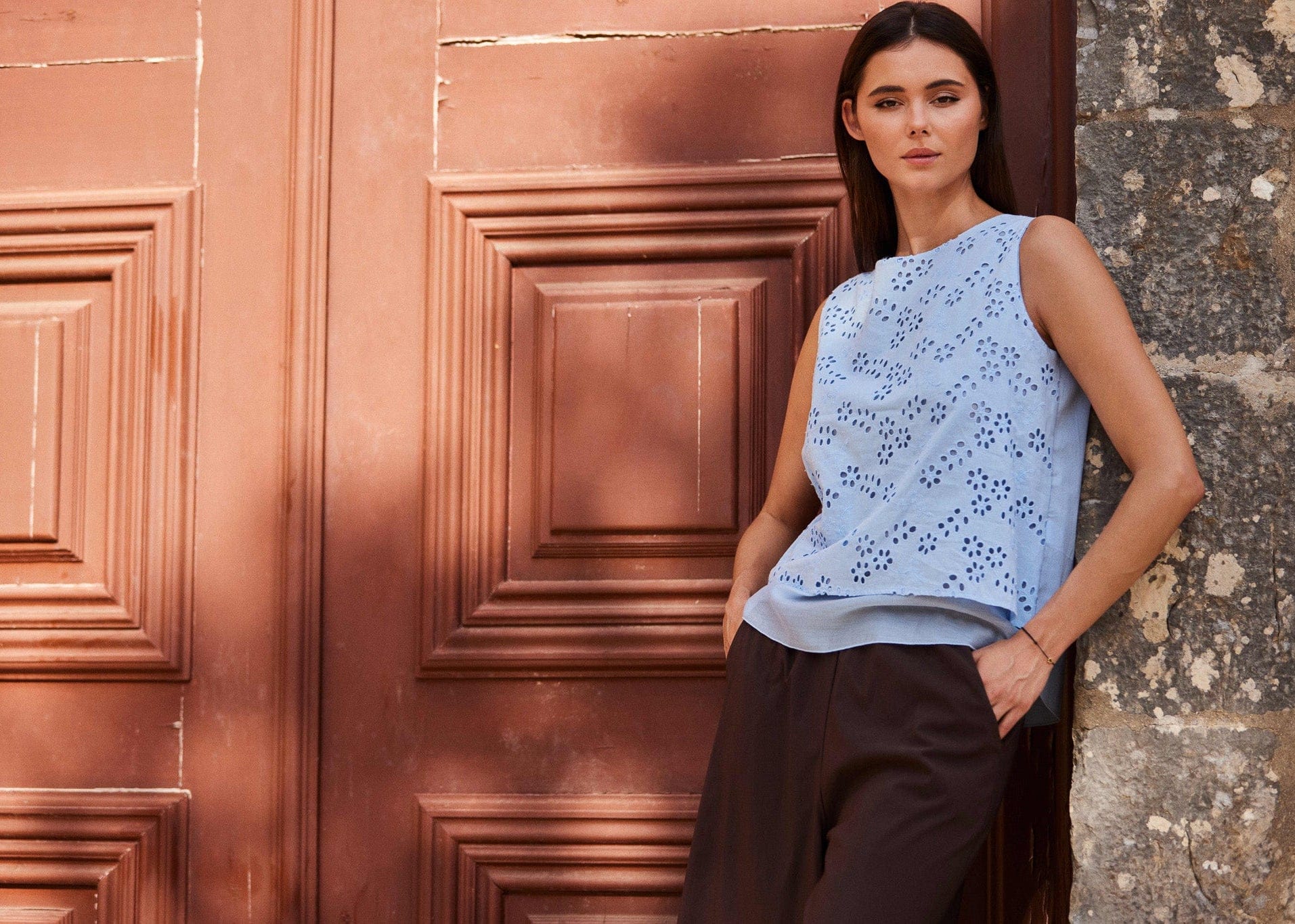 Embrace spring elegance with the PERUZZI floral broderie top. Showcasing intricate floral detailing and a charming double hem, this delicate piece brings understated sophistication to your seasonal wardrobe. Soft, feminine, and endlessly versatile, it's the top you'll reach for again and again.