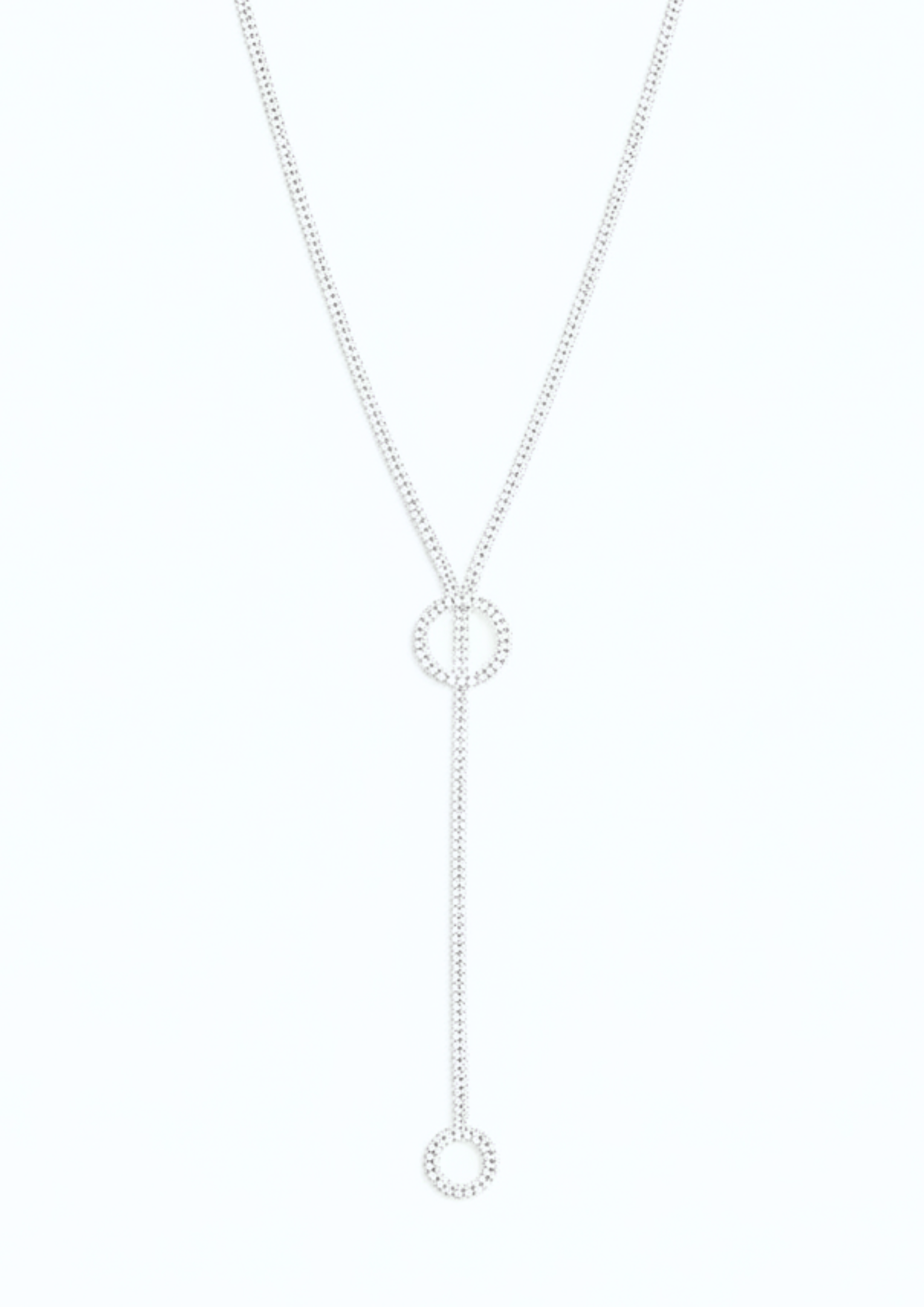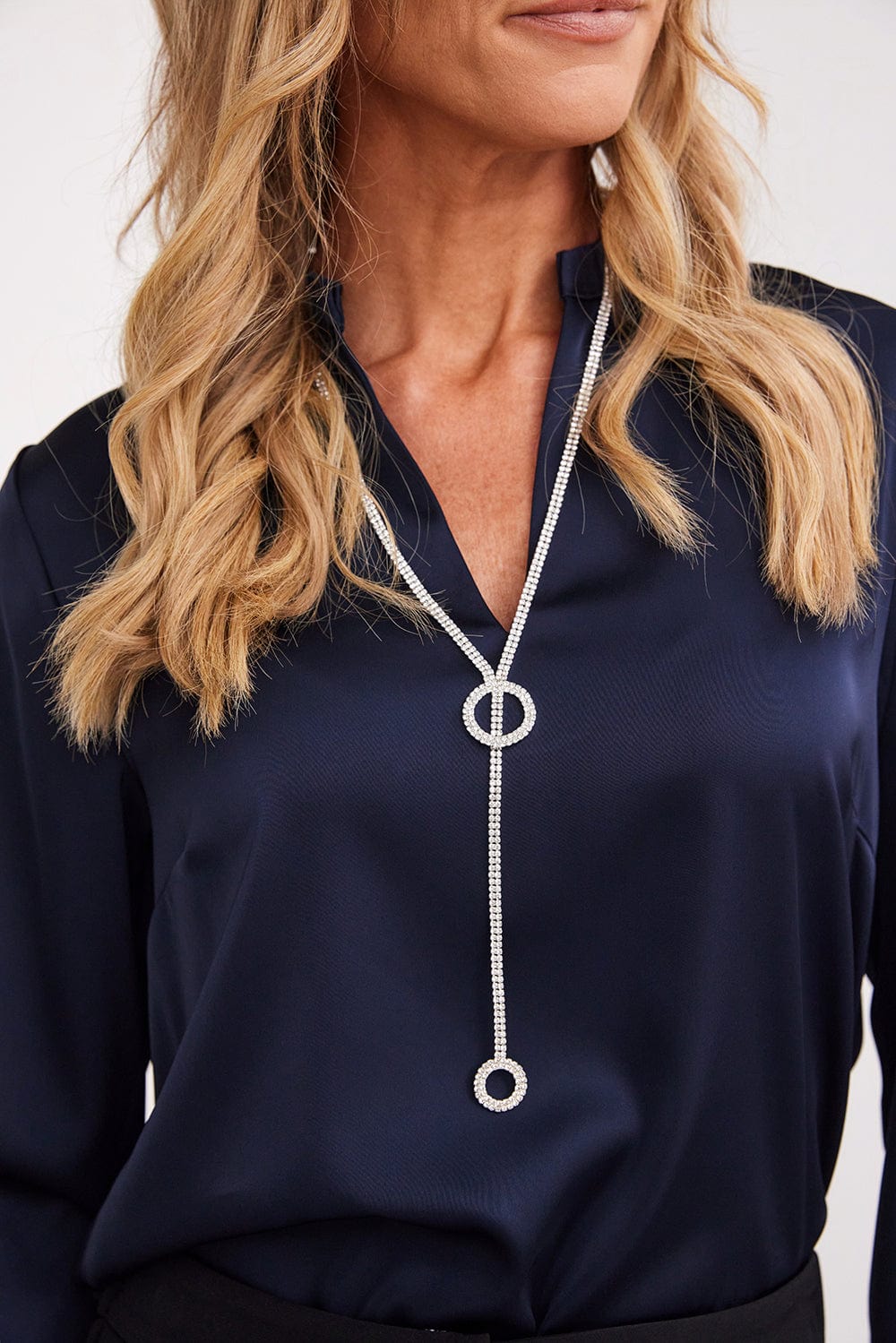 The Aifric necklace features elegant silver diamante accents arranged in bold circular designs, making a striking statement.