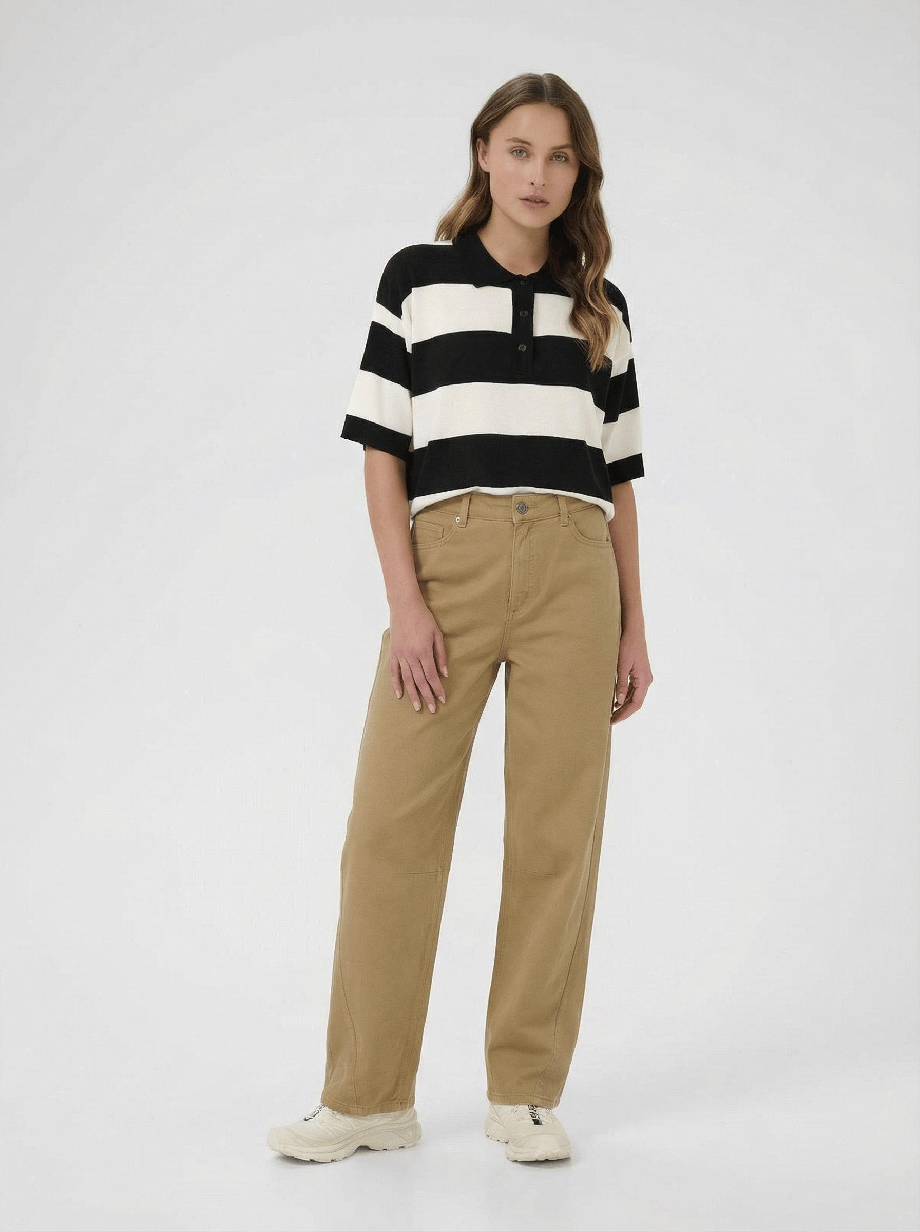 The Kaffe Barrel trousers are your new seasonal favourite, with a flattering high waist and a barrel leg design, these flattering trousers can be paired with any tee or knit for a full look.