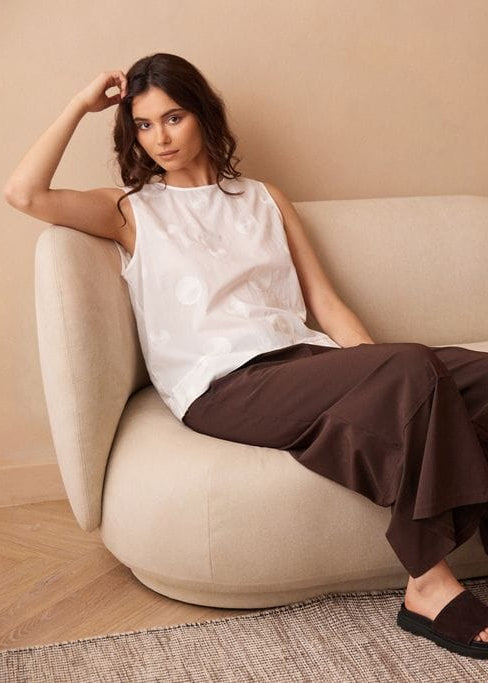 The PERUZZI circle stitch top is the perfect top for the warmer months, with breathable fabric and a self colour circle stitch detaling, its our go-to spring/summer essential.
