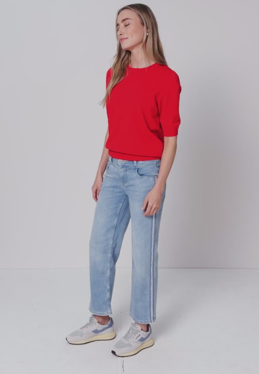 The straight-leg jeans from Street One for women bring a trendy update to any casual look with their decorative light blue stripe down the side. The blue wash, mid-rise waist, and classic 5-pocket style make them a stylish all-rounder. The added stretch ensures comfortable freedom of movement.